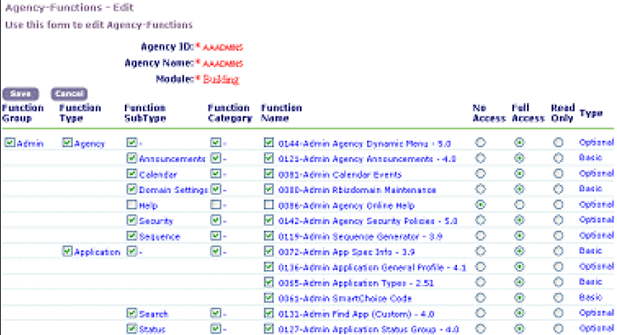 The Accela implementation team gives you all the appropriate basic functions contained in the release when they create your agency. Do not change the basic functions. Use this feature only to enable or disable optional functions for your agency. Many FIDs have cascading effects, so be certain you understand the scope of an FID before enabling or disabling it.