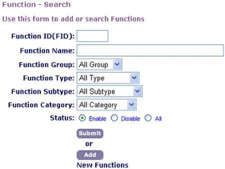 - Select or clear the check boxes for Function Group, Function Type, Function SubType, Function Category, or Function Name.