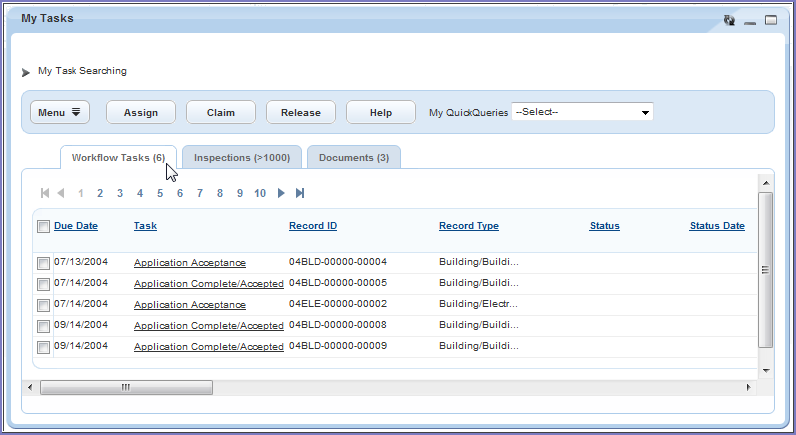 Civic Platform refreshes the Workflow Tasks tab and Inspections tab to display the search results.