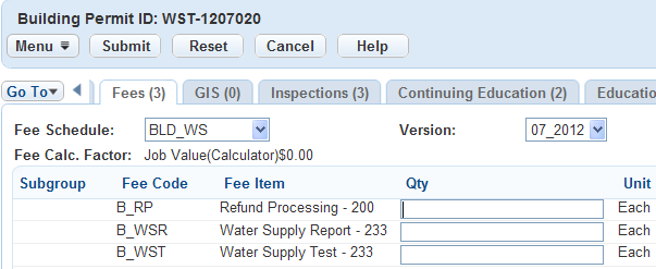 If the Fee Calc. Factor field does not display, Civic Platform calculates fee items with the default Job Value (Contractor).