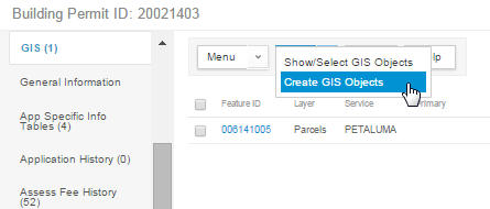 If you selected multiple GIS objects, Civic Platform prompts you to choose the primary GIS object. For example: