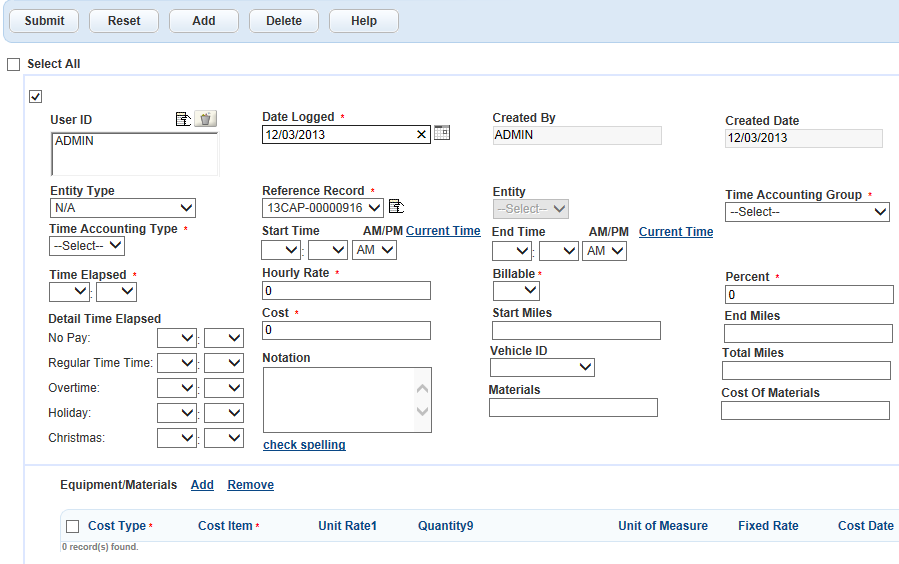 Civic Platform adds another time accounting record in the detail portlet.