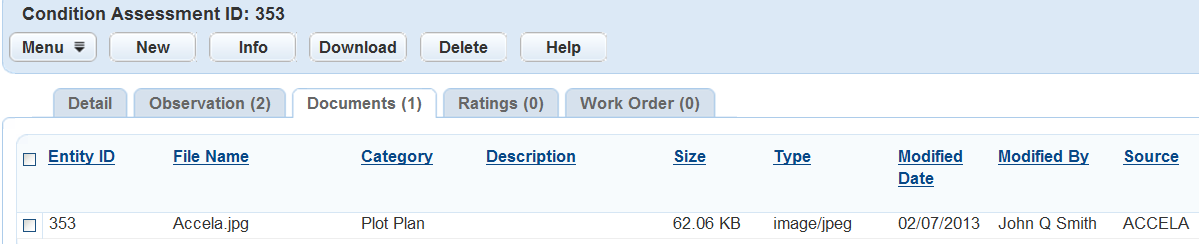 Complete the fields with available data. See Asset Condition Assessment Document Attachment Fields for field definitions.