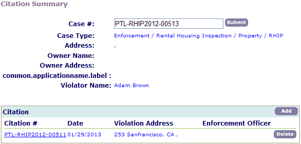 After you add a citation, you can add defendants and violations as appropriate. For information, see Managing Defendants and Managing Violations.