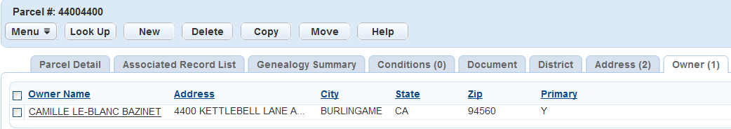 In the parcel detail form portlet, click the Owner tab.