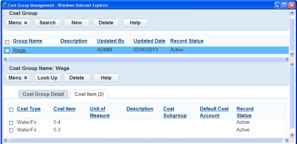 Select the Cost Item tab, and click Look Up to search for cost items you plan to add in the cost group.