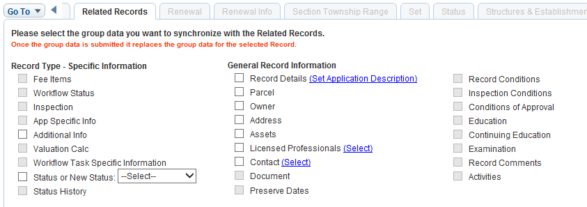 Select the data elements you want to update. See Record Copying and Cloning Form Fields for information about the options.