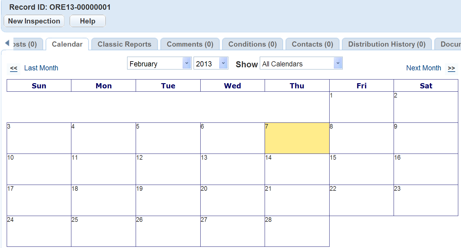 Click any link for a scheduled to view the details, or click New Inspectionto schedule an inspection.