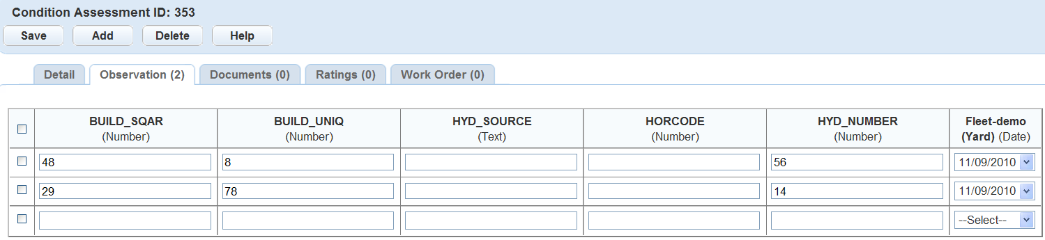 Most agencies pre-define assessment observation formats to accommodate specific assessment types and specific attributes. The inspector can then use these formats as a guideline when performing an assessment. For example, when an inspector assesses a vehicle, he inspects everything with great detail. Do the headlights and taillights function properly? Are seat belt latches in good condition? Are the windshields free of cracks and chips? Are the rear view mirrors intact? A pre-defined observation format serves as a checklist for the inspector, and his observation results help determine what needs repair. Civic Platform can then generate work orders for needed repairs.