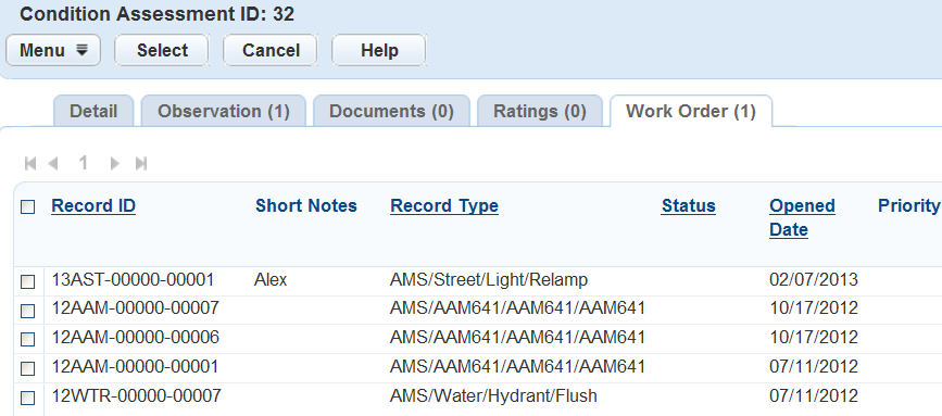 Asset assessments often alert agencies to problems that need attention. A work order is the starting point in the repair process. Associating a work order with an assessment helps track the work order’s progress.