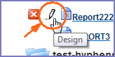 Open the design form for an existing report/dashboard that you want to copy by clicking the Design button to the left of the desired report. Note that the Delete and Design buttons for a report become visible when you hover your mouse cursor on the report name.