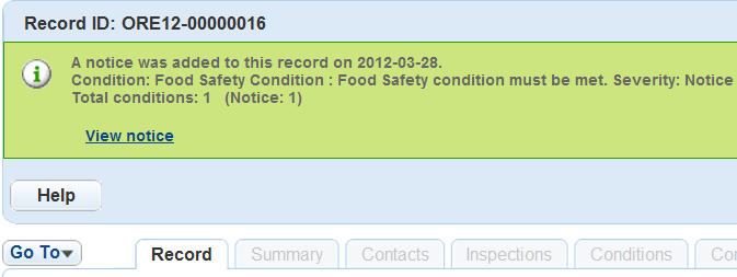 Civic Platform applies the custom condition and then displays the condition for the inspection.