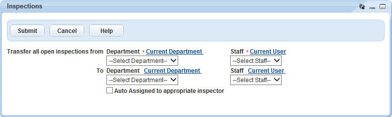 Reassigning an Inspection Automatically from the Building or Service Request portlet