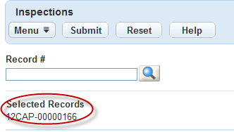 Navigate to the Inspection portlet and use search to locate the record you want to work with (See Using the Search Features for more information).