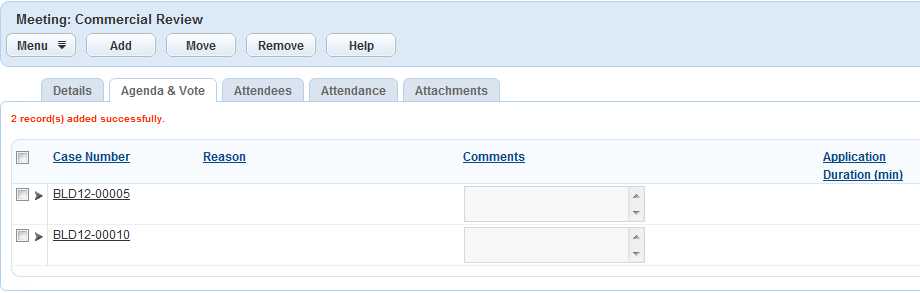 Civic Platform adds the selected record to the agenda.