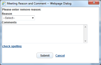 Select a reason and enter optional comments.