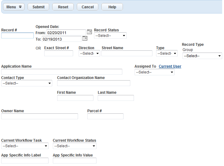 Access the Records portlet (see Navigating with Main Links in the Civic Platform User Guide).