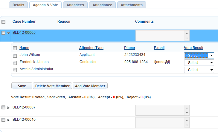 Select the vote result from the drop-down list.