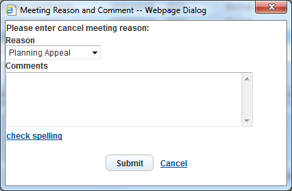 Civic Platform displays the Meeting Reason and Comment dialog.