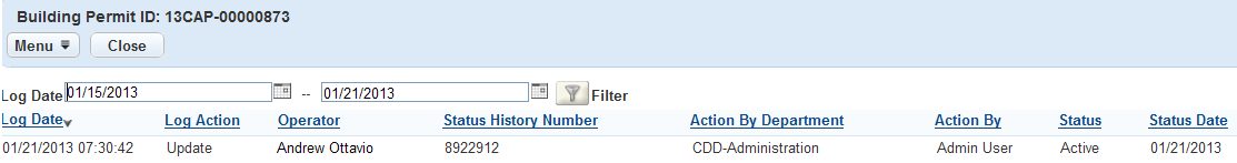 You can edit the status history, including the date, status, comments, and related staff member information, to correct errors and ensure the accuracy of status entries. This is useful if you plan to clone a record, re-open a record to resolve pending issues, or re-assign a record to a different person at your agency.