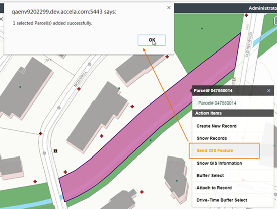 - Click OK. The map stays open in case of locating and adding more parcels to the set.