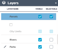 Open the Layers widget to make sure the Parcel layer is selectable on the map view: