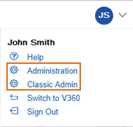 (Application menu) in the upper right-hand corner. Select either Administration or Classic Admin from the menu.