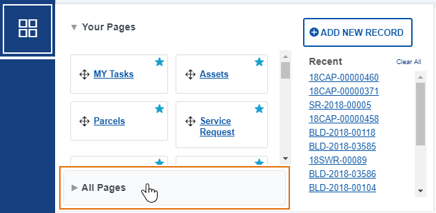 Click the All Pages link to access a list of pages.