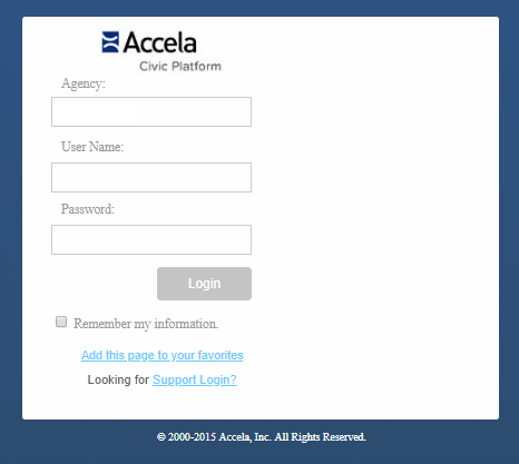 Your agency's name, a valid user name, and a password are all you need to log in to Civic Platform. If you don’t have these, see your system administrator. These values are case sensitive, so be sure your Caps Lock key is not engaged.