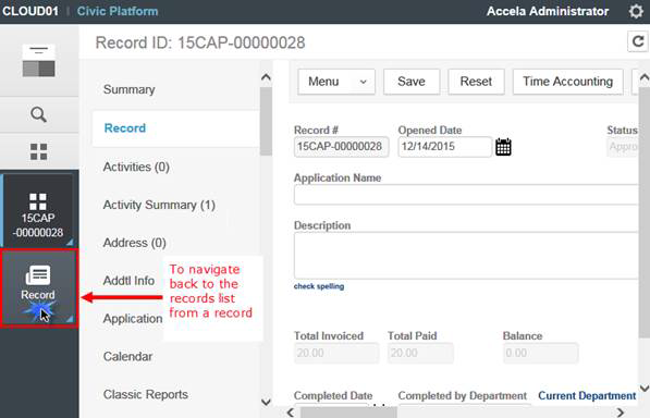 to access the launchpad. - Navigate to the Records page (In the Filter list... field, enter Record.).
