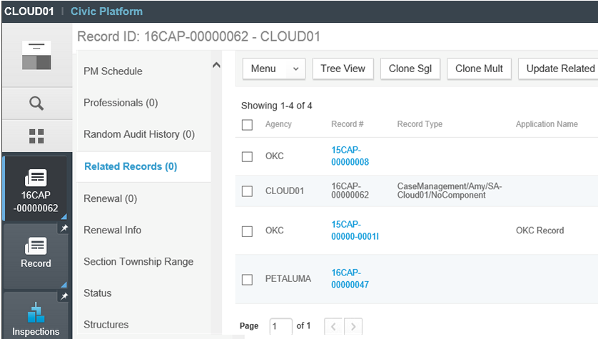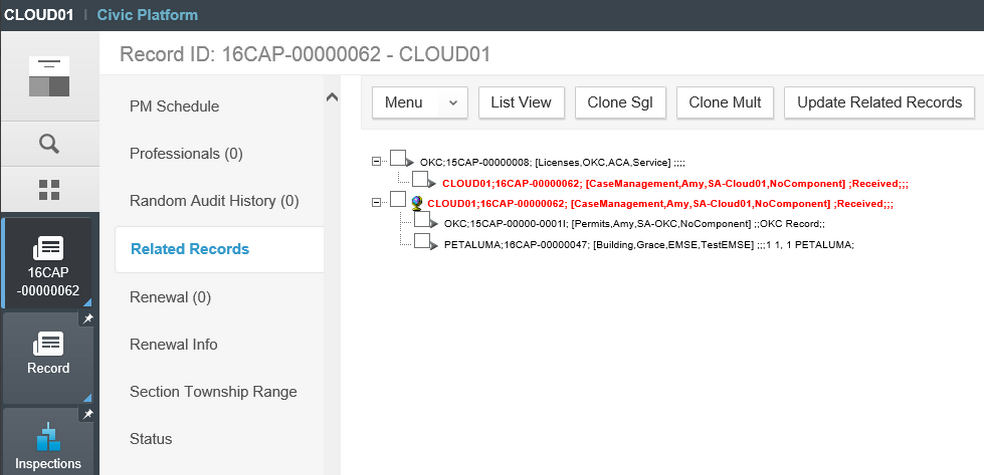 Civic Platform enables users to view related records across multiple agencies, in both list view and tree view.