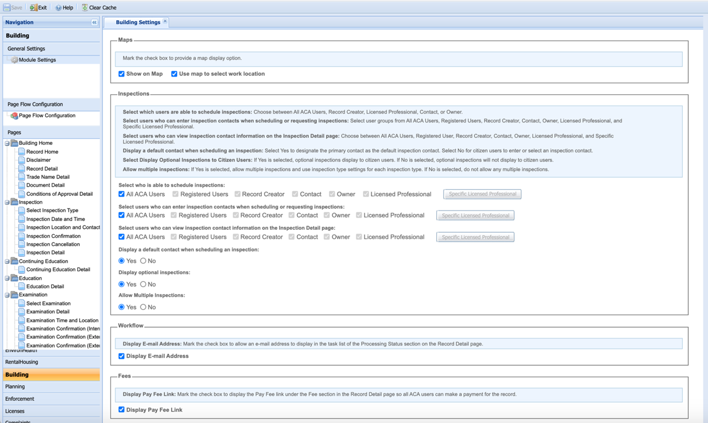 This feature works when Accela GIS is configured and the Show on Maps checkbox in the Module Settings is checked.